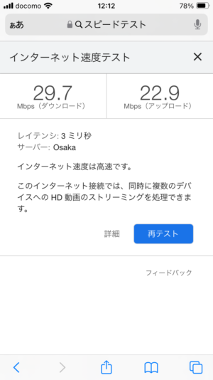 スピード的にも上がり下り問題なしでブラウジングも動画も問題なく見れました。