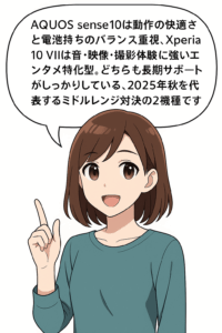 ご覧いただきありがとうございます。この記事では、2025年秋に登場した最新ミドルレンジモデル「AQUOS sense10」と「Xperia 10 Ⅶ」を徹底比較していきます。