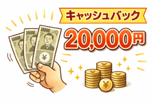 現金20,000円のキャッシュバックが受けられるキャンペーンが実施中です。