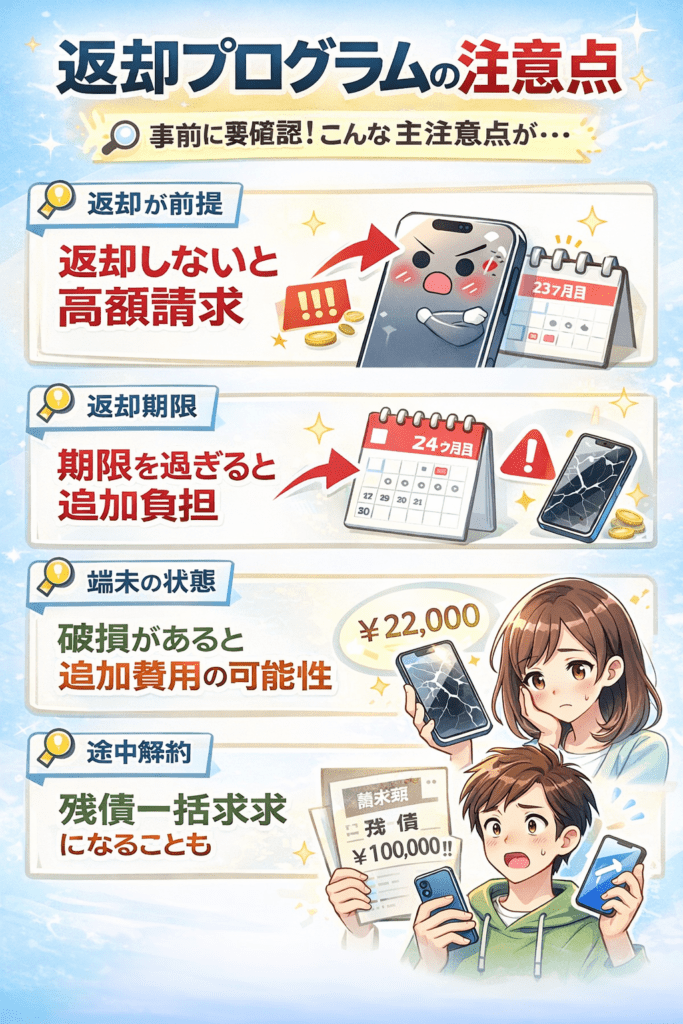 返却しなければ、残りの端末代金を全額支払う必要があります。 -