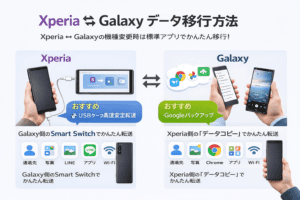 GalaxyへはSmart Switch、XperiaへはAndroid標準のデータコピー機能で移行可能です。